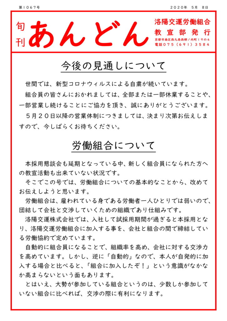 あんどん1067号 – 洛陽交運労働組合