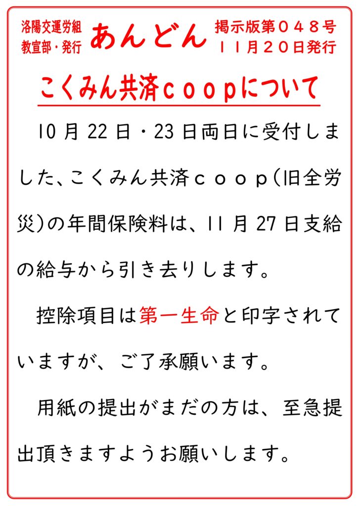 あんどん掲示版048号 – 洛陽交運労働組合