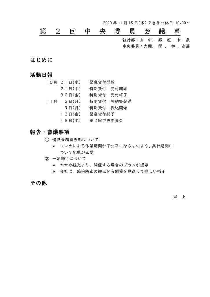 第2回中央委員会議事 – 洛陽交運労働組合