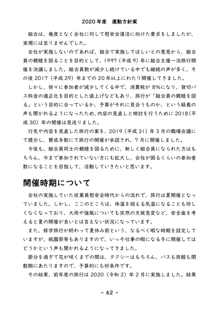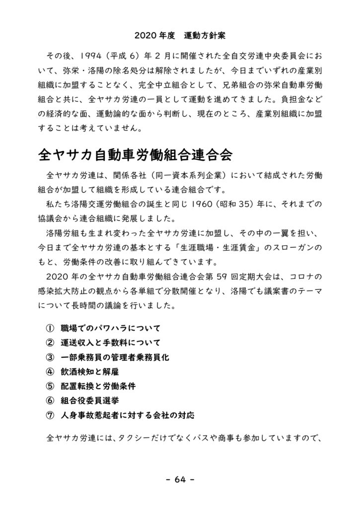 2020年度 運動方針案④ – 洛陽交運労働組合