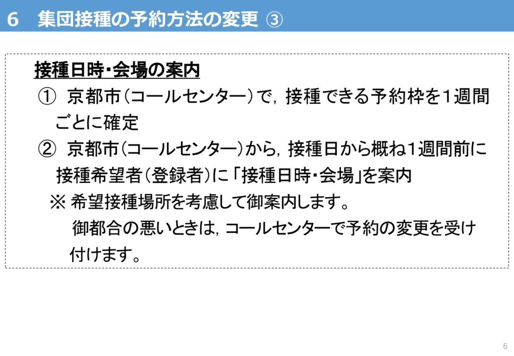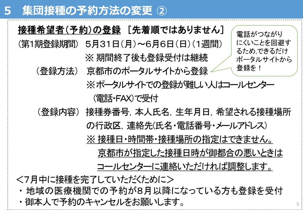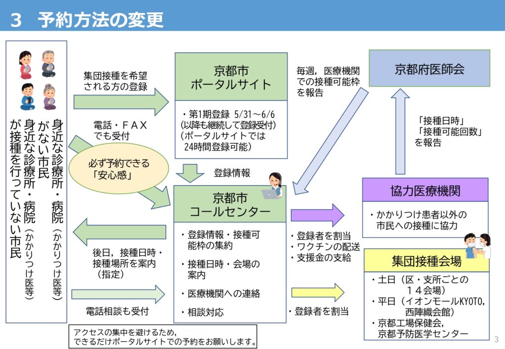 - 集団接種の拡充と予約方法の変更について(https://www.city.kyoto.lg.jp/hokenfukushi/cmsfiles/contents/0000280/280084/R30526yoyaku.pdf)