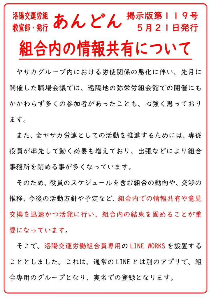 【K119】組合内の情報共有について – 洛陽交運労働組合