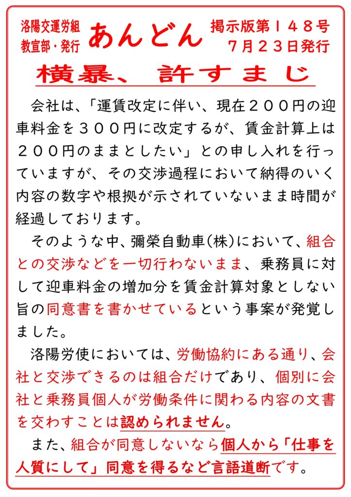K148 横暴、許すまじ – 洛陽交運労働組合